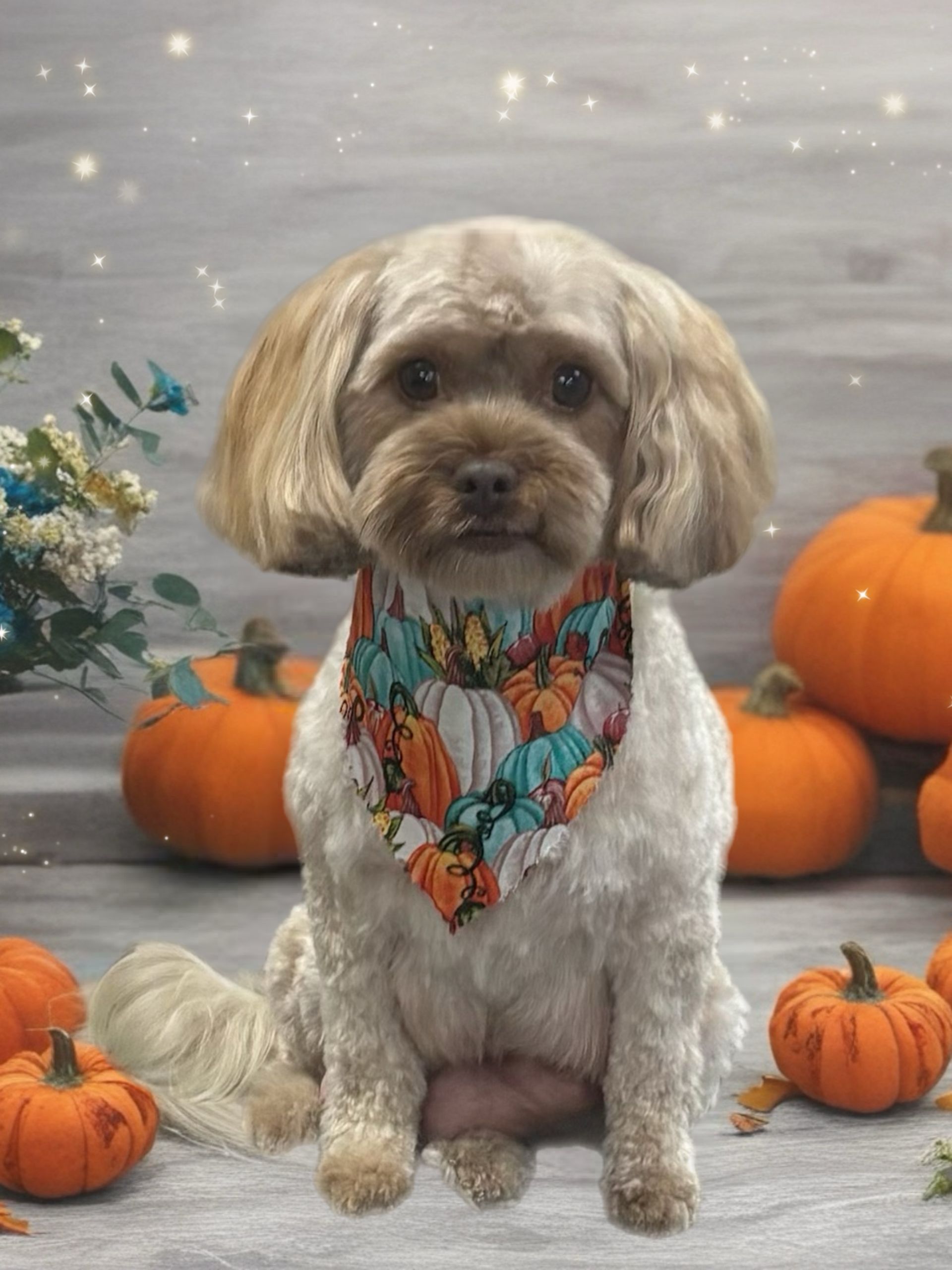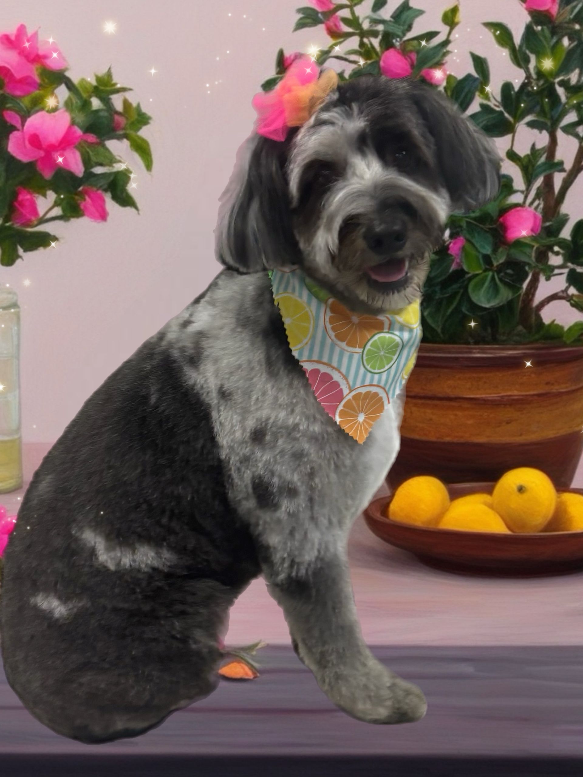 Mini groom services include bathing, face/fanny trimming, nails cut and filed smooth, ears plucked and cleaned, gland expression (if needed) and pet photo!